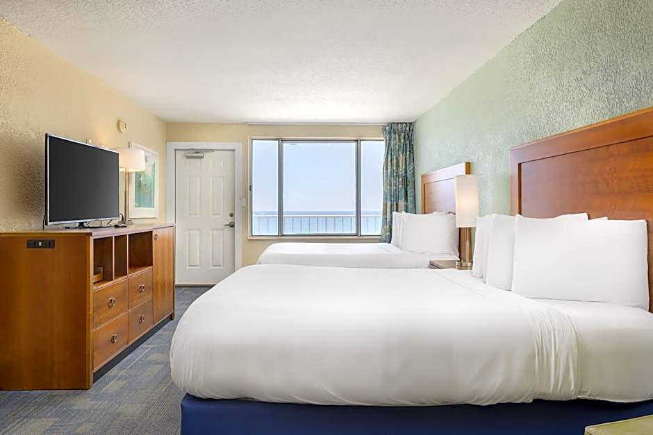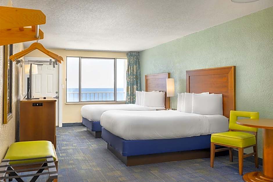 This room features 2 queen beds in separate sleeping areas with a 32-inch flat-screen cable TV in each sleeping area. A private balcony with Gulf view, full-size refrigerator, microwave, single-serve coffee maker and a small seating area are also included.
